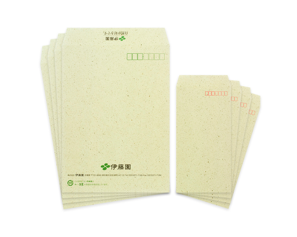 軽くて中が透けにくいお茶殻入り封筒は、茶殻を使用することで紙原料の使用量も削減。     伊藤園 提供