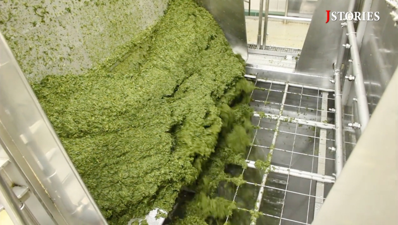 大手飲料メーカー、伊藤園の人気商品「お~いお茶」の工場では、家庭と同じように急須を使ってお茶を抽出しているため、大量の茶殻が排出される。その量は年間54800トンで、およそ東京ドーム1杯分に及ぶ。