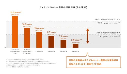 フィリピンはコーヒーの世界三大原種である希少な「リベリカ種」の産地だが、国際競争の激化や病害、外資の進出などで、同国内の生産量は減少の一途をたどり、貧困拡大の一因となっている。コーヒーの廃材を使った新ビジネスには、農村の人々に新しい収益源を提供すると同時に、コーヒー生産者としての自信と誇りを取り戻してもらいたいとの思いも込められているという。