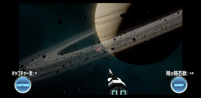 Just five minutes playing Meteor Blaster is sufficient to test both eyes. Players press the “shoot” button to destroy incoming asteroids as they enter the crosshairs in the center of the screen. Meanwhile, they also press the “capture” button whenever they spot white lights that flash randomly.