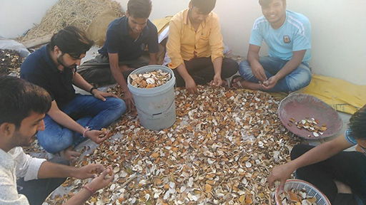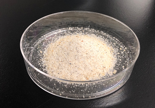現在使用している材料は、すべてインドのオレンジジュース工場から回収した残渣だが、中尾さんによると、今後は、オレンジの皮以外のフルーツや海藻など、使用できる材料を増やす研究を進めながら、残渣の現地調達を目指している。「材料の幅が増えると、様々な国で廃棄するしかなかったものを、有効な材料として循環させることができる」からだ。