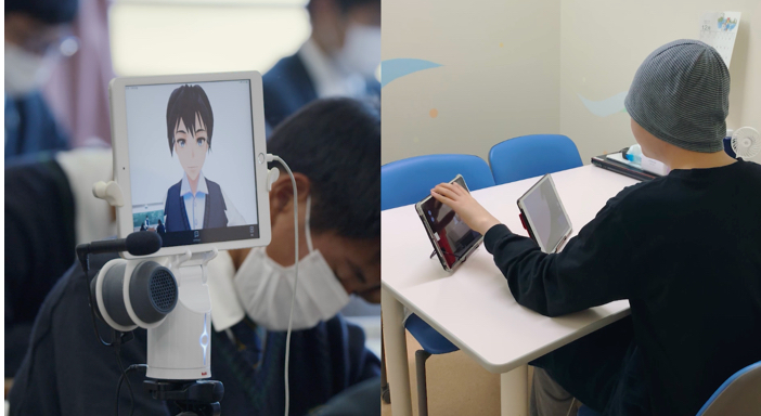 From their hospital wards, children can use PCs, smartphones and other devices to choose an avatar and then control the classroom-based bots, which carry a screen on which the chosen avatar appears. This allows them to take lessons, have conversations with teachers and friends, and even steer Telerobo around the school.