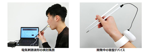 In April 2022, a chopstick-like device that connects to a smartwatch via a cable was developed. Later, in September of the same year, spoon-shaped and bowl-shaped devices were also created. All of these devices use electrical stimulation from the tableware to enhance the flavor of low-salt foods.