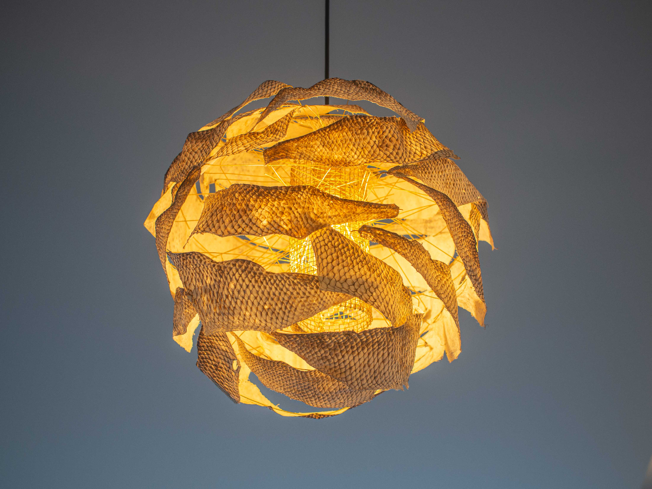 A light shade made from fish skin leather.     Source: Courtesy of Think Sea Co.