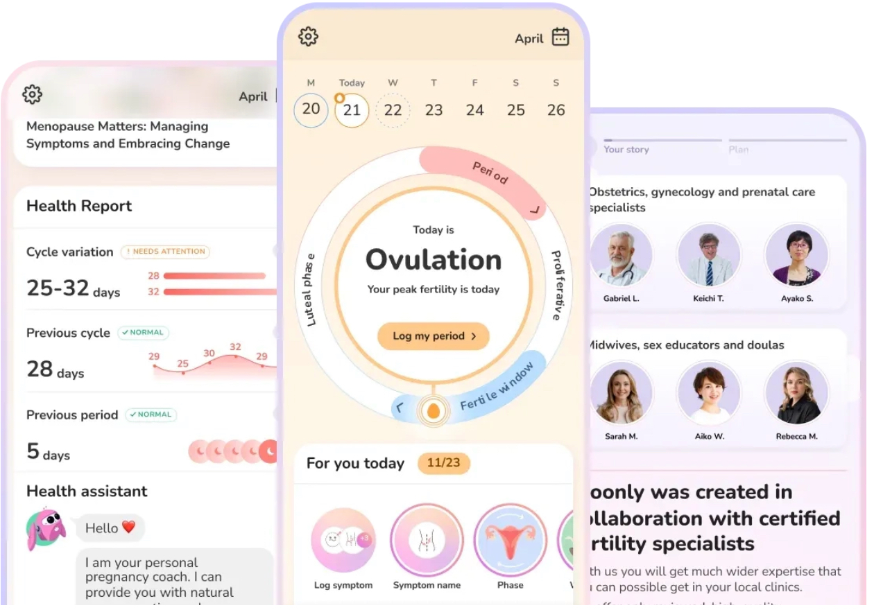 With tens of thousands of downloads, the app allows users to track their periods, predict ovulation, and plan for conception, helping those trying to conceive. For menopause, Moonly has features to monitor symptoms like hot flashes, mood changes, and sleep disruptions, and provides advice and coping strategies. By offering insights tailored to individual needs, Moonly empowers women to better understand and manage their health at different life stages, fostering improved well-being and informed decision-making.