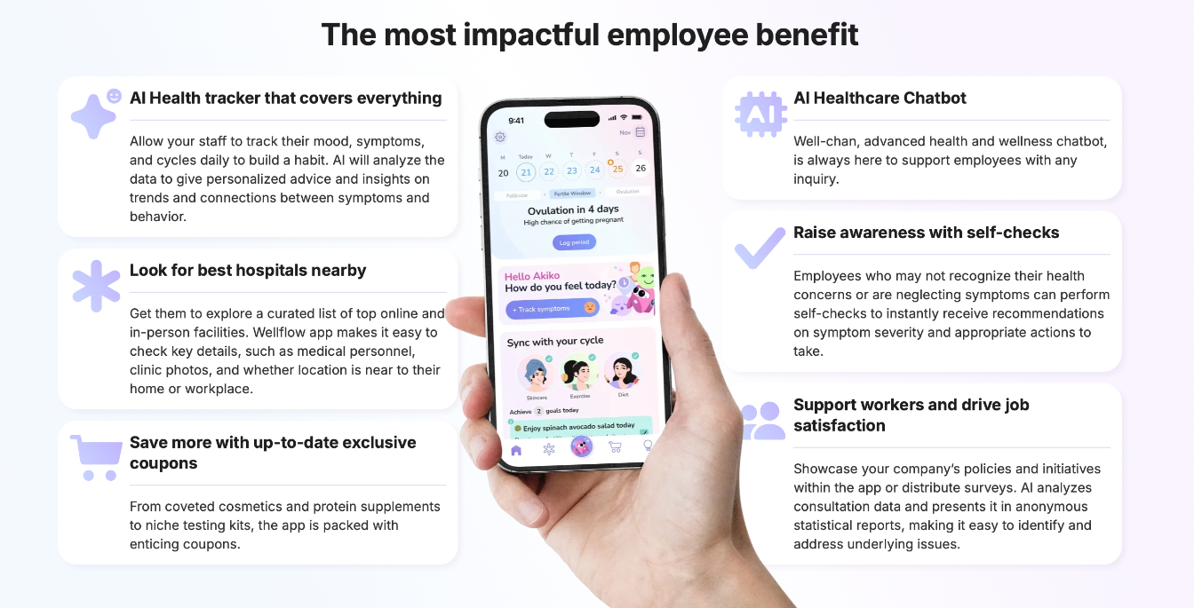 Flora’s B2B platform, Wellflow, is helping to transform workplace environments in Japan by turning employee feedback and health data into meaningful change. Used by factories, shipping firms, and railway operators, the system provides actionable insights that improve both employee well-being and productivity.