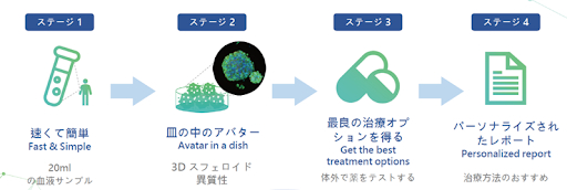 検査はわずか20mlの患者の血液があれば可能。効果の有無が明確でない薬剤による副作用を軽減するだけでなく、対象患者に適した治療法を検討するまでの時間も短縮することができるという。血液採取から、およそ3週間で個別化治療のオプションを医療機関に提供している。