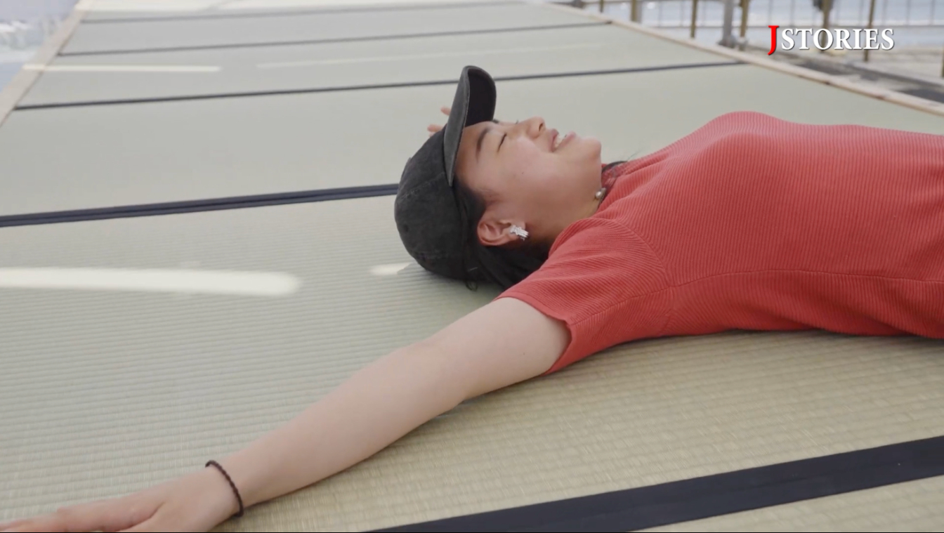 J-STORIES ー 1000年以上の歴史を誇り、時代に応じて発展してきた畳は、視覚、嗅覚、触覚などを満たし、心に潤いを与える効果があることが知られている。しかし、日本人の生活様式の変化など背景に、現在は衰退の一途をたどっている。この窮状を打開しようと、畳産地が振動するスピーカーを埋め込んだ奇抜な畳を開発、新しいリラクゼーション市場の開拓をめざしている。