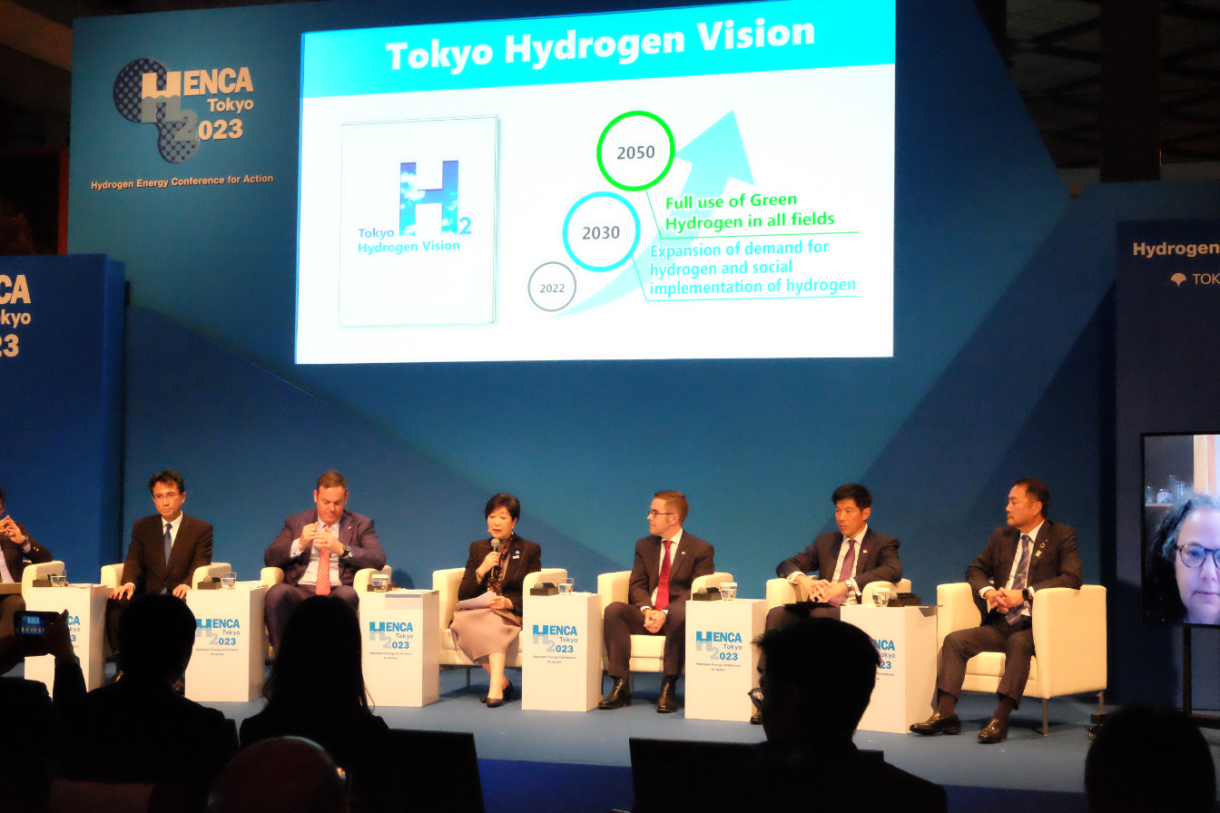 こうした中、東京都の小池百合子知事は会議に先立つ11月、都内で国際会議「HENCA Tokyo 2023」を開催し、都が世界に先駆けて取り組んでいる街全体での水素活用をアピールした。