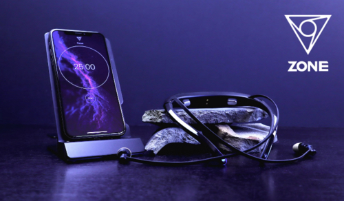 外見は普通のワイヤレスイヤホンと変わらないが、脳波を解析し、ストレスを和らげ、集中力を高める効果がある「VIE ZONE(ヴィーゾーン)」。脳波の変化をアプリを通じて携帯端末に映し「ニューロフィードバック」という仕組みによって、疲れを検出すると休憩が必要な時間を示したり、音楽による瞑想でリフレッシュができるようにする。