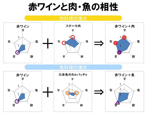 赤ワインと肉/魚の相性の相関図     OISSY提供