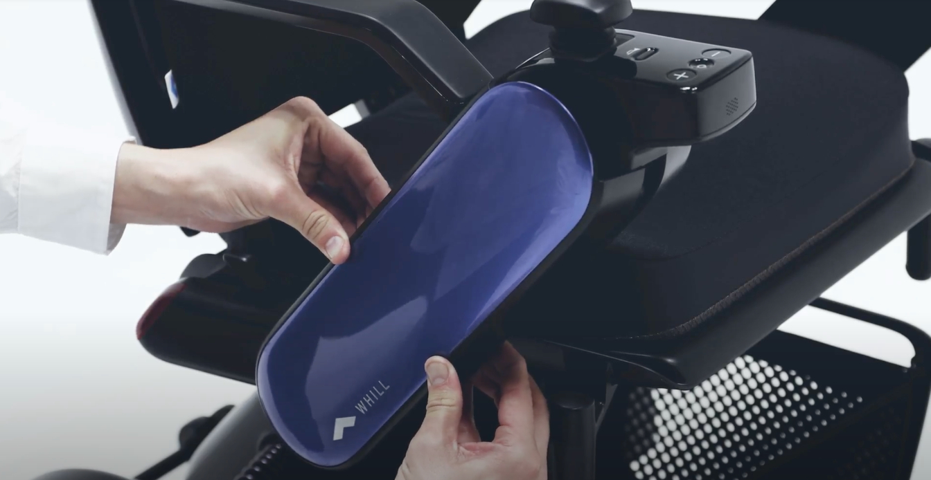 WHILLの電動車いすは、アームカバーの色を光沢のある青・黒・白・ピンク・緑などから選ぶことができる。ファッション性を高め、楽しく使えるように、という狙いがある。     WHILL 提供