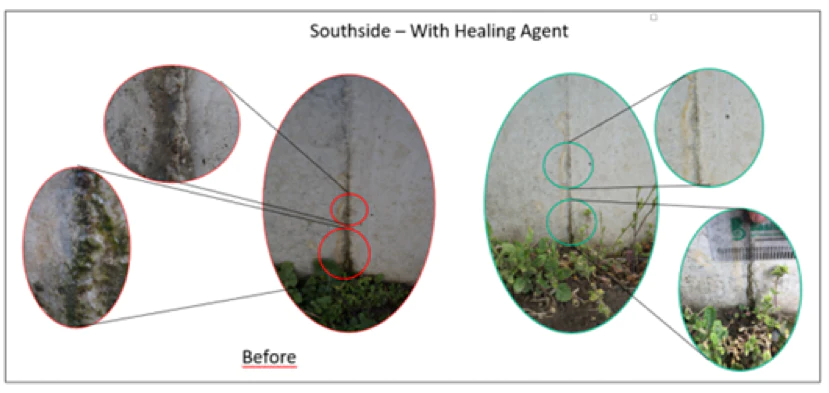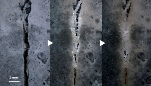 同社の「Basilisk HA自己治癒コンクリート」は、特殊なバクテリアを配合しており、ひび割れが起こると、そのバクテリアが活性化して、ひびを自動的に埋めて、自己修復を行う。通常の点検では発見が難しい初期の段階で、修復が行われる為、ひび割れの悪化や、致命的な鉄筋のサビなどに至る前での修復が期待できる。