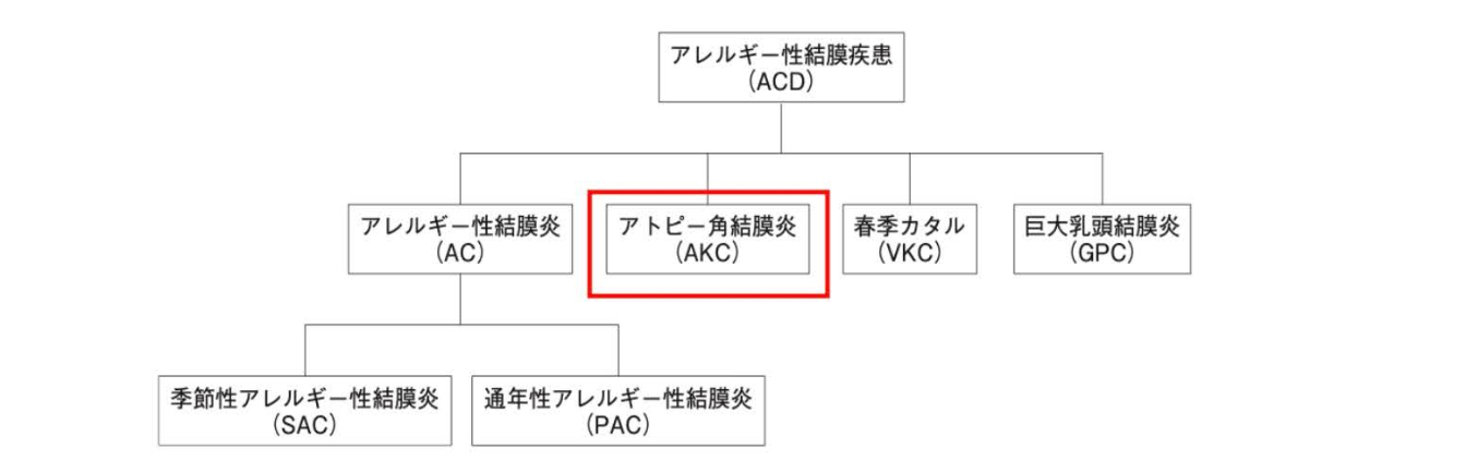 アレルギー反応により生じる結膜の炎症疾患であるアレルギー性結膜炎の分類