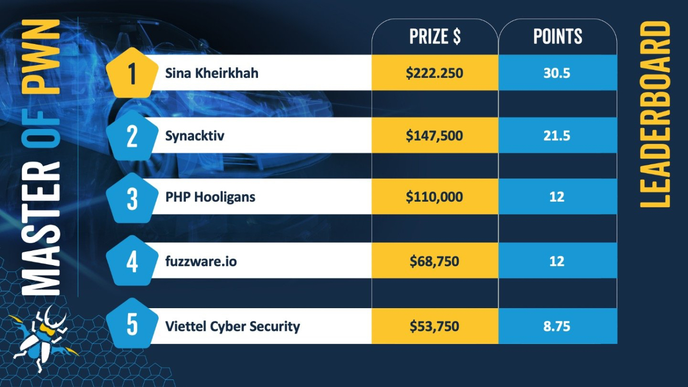 This year, 21 teams from 13 countries participated, competing across three categories: In-Vehicle Infotainment systems, electric vehicle (EV) chargers, and operating systems. Contestants aimed to discover unknown vulnerabilities, with successful participants earning points and cash prizes of up to $500,000. The team with the most points was awarded the prestigious title of Master of Pwn.
