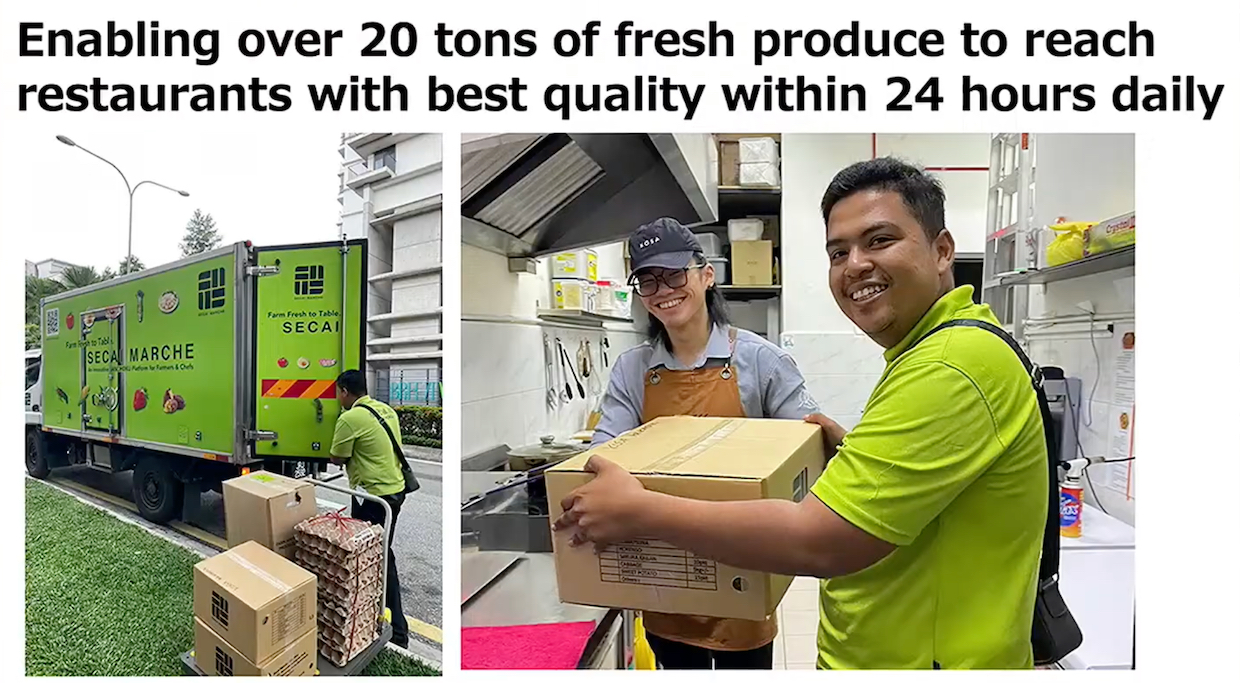 Currently handling over 400 farmers and 4,000 products from Japan, Malaysia, Singapore, and other regions, the company supplies over 1,800 hotels and restaurants in Malaysia. Occupying over 90% of the high-end restaurant market, Secai Marche has maintained 200% annual revenue growth since its 2019 founding. Last year, the company expanded into the Singapore market and diversified its business from vegetables and fruits to seafood, processed foods, and kitchen equipment.