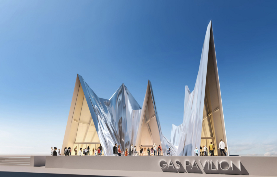 スペースクールの膜材料を使用する大阪・関西万博ガスパビリオンの建物デザインイメージ。     日本ガス協会 提供