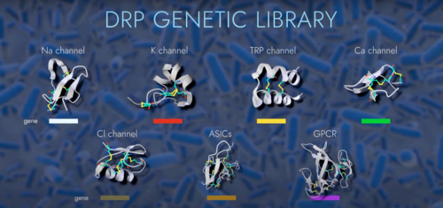 Veneno Suiteを支えるコアテクノロジーのひとつは「DRP space」という遺伝子ライブラリの作成方法にある。従来の方法では天然の毒液からペプチドを見つけてライブラリを作るが、集めるのに時間がかかり大きなライブラリを構築するのは困難だった。そこで、あるDRPを鋳型にして遺伝子の一部を改変し、多種多様なタイプのDRPを作成する方法を開発、10億種にも及ぶ大きなライブラリが実現した。