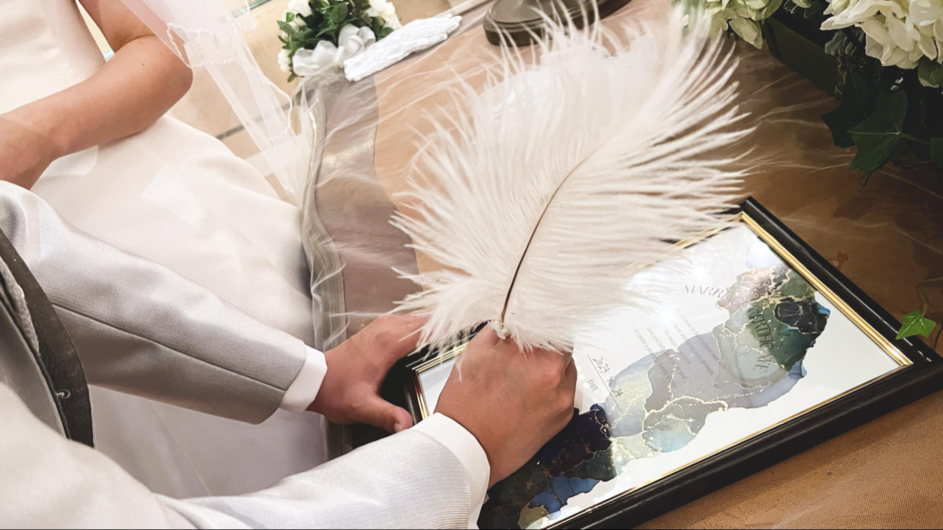 そもそもは日下さんが自身の結婚式でデザイナーに依頼した証明書を使用したところ、周囲から注目を集めたことがきっかけ。「ゲスト参加型の結婚証明書が流行する中、アルコールインクの結婚証明書がとても魅力的で、挙式に参加した友人からもおしゃれで私らしいと絶賛してもらった」(日下さん)ことから起業を決意した。