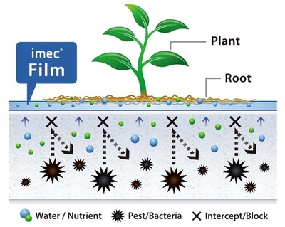 フィルムの表面にはナノメートル(100万分の1mm)サイズの穴が無数に空いているが、細菌やウイルスは侵入できない。作物を栽培するには、このフィルム上に種を蒔き、フィルムの下にある潅水チューブから清潔な栄養と水分を供給しながら発芽、発根する。
