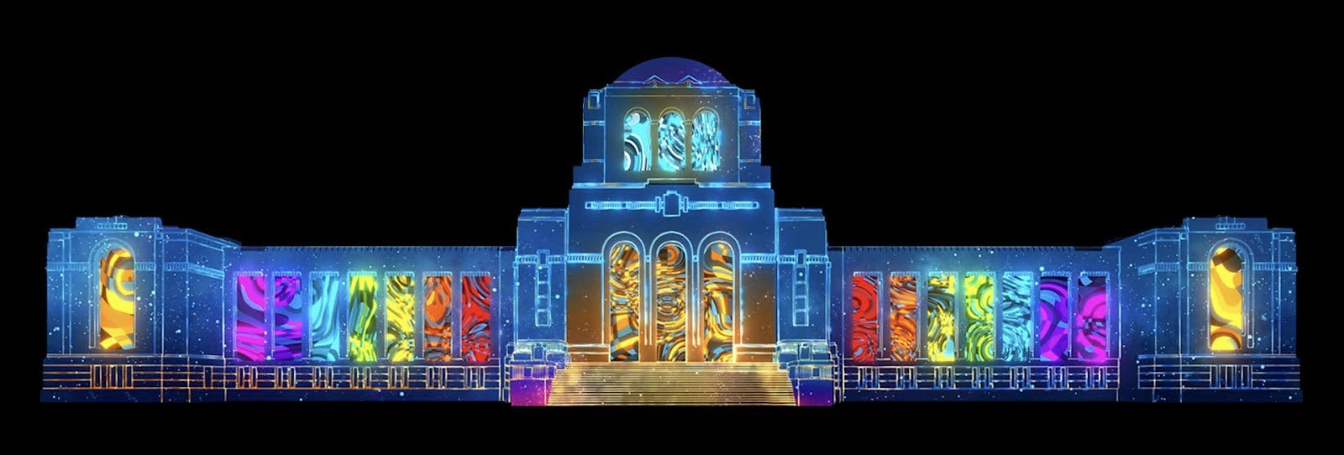 在這樣的背景下,為將東京打造成光雕投影中心,2024年9月舉辦了全球最大規模的光雕投影國際大賽,匯聚世界頂尖創作者。11月則在明治神宮外苑聖德紀念館展出包括2024年度在內過去4年的大獎得獎作品。