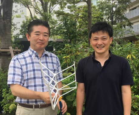 「浮体式風車はビジネス的魅力がある」と語る秋元代表(左)と資金調達に応じたジェネシア・ベンチャーズパートナー/CSOの河合将文さん  アルバトロス・テクノロジー 提供