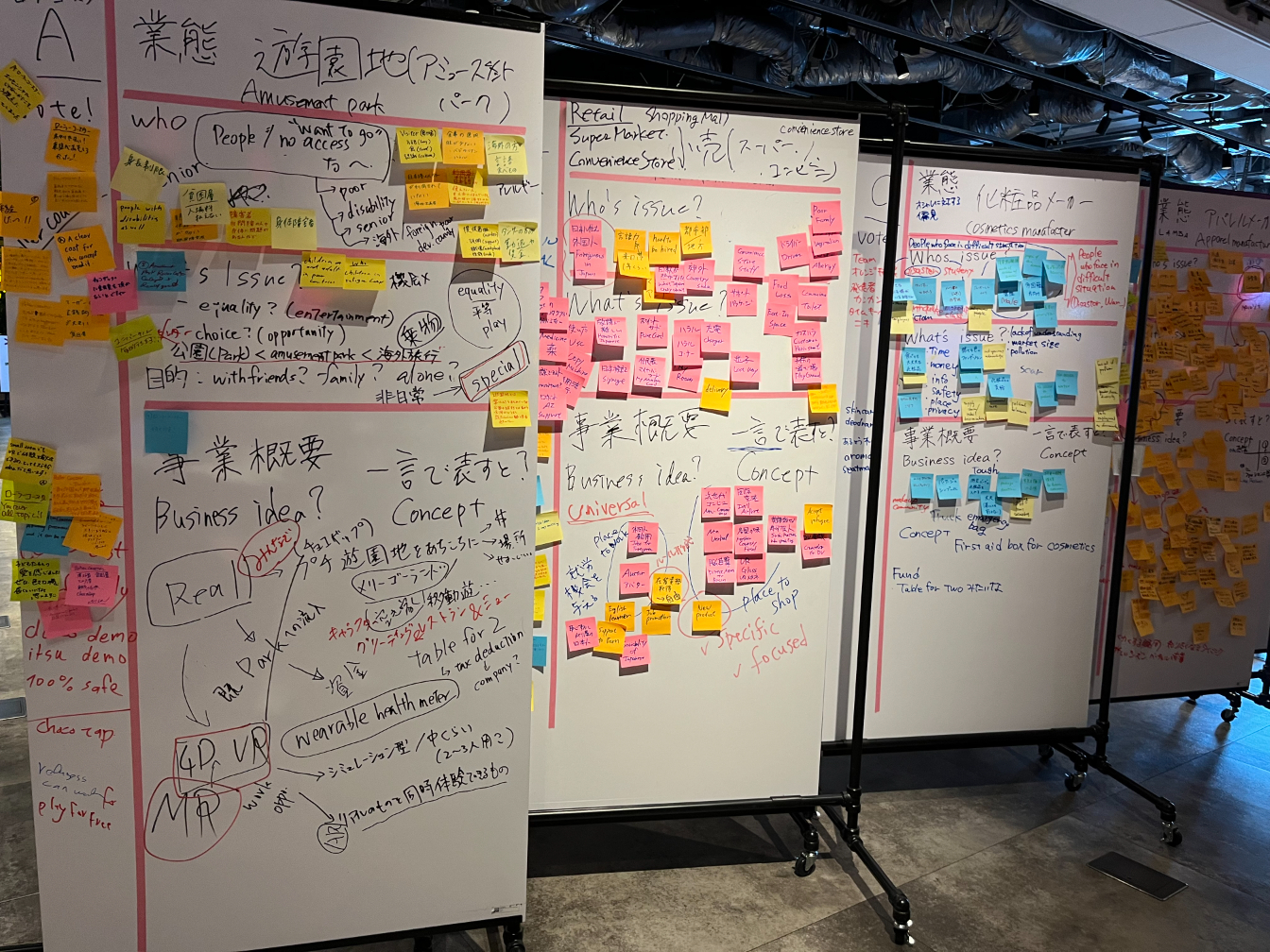 每個小組在活動前被分配了8個討論主題,涵蓋消費者零售、化妝品、手機、網路等領域。經過圍繞新服務和事業概念的熱烈討論,誕生了「震災時可使用的化妝品盒」、「讓任何人都能體驗非日常生活的VR(虛擬實境)迷你遊樂園」等眾多獨特的事業創意,最後各團隊進行了簡報發表。